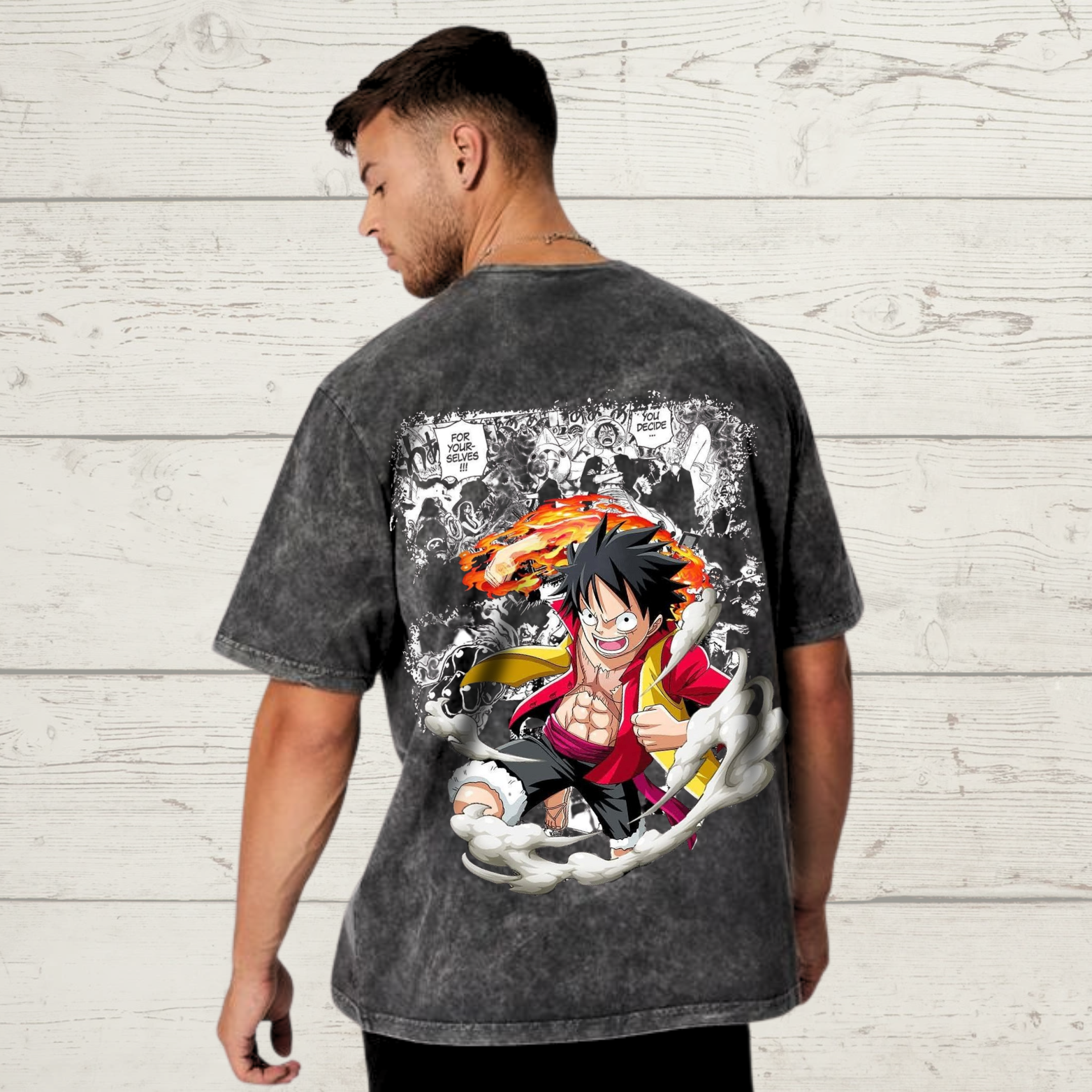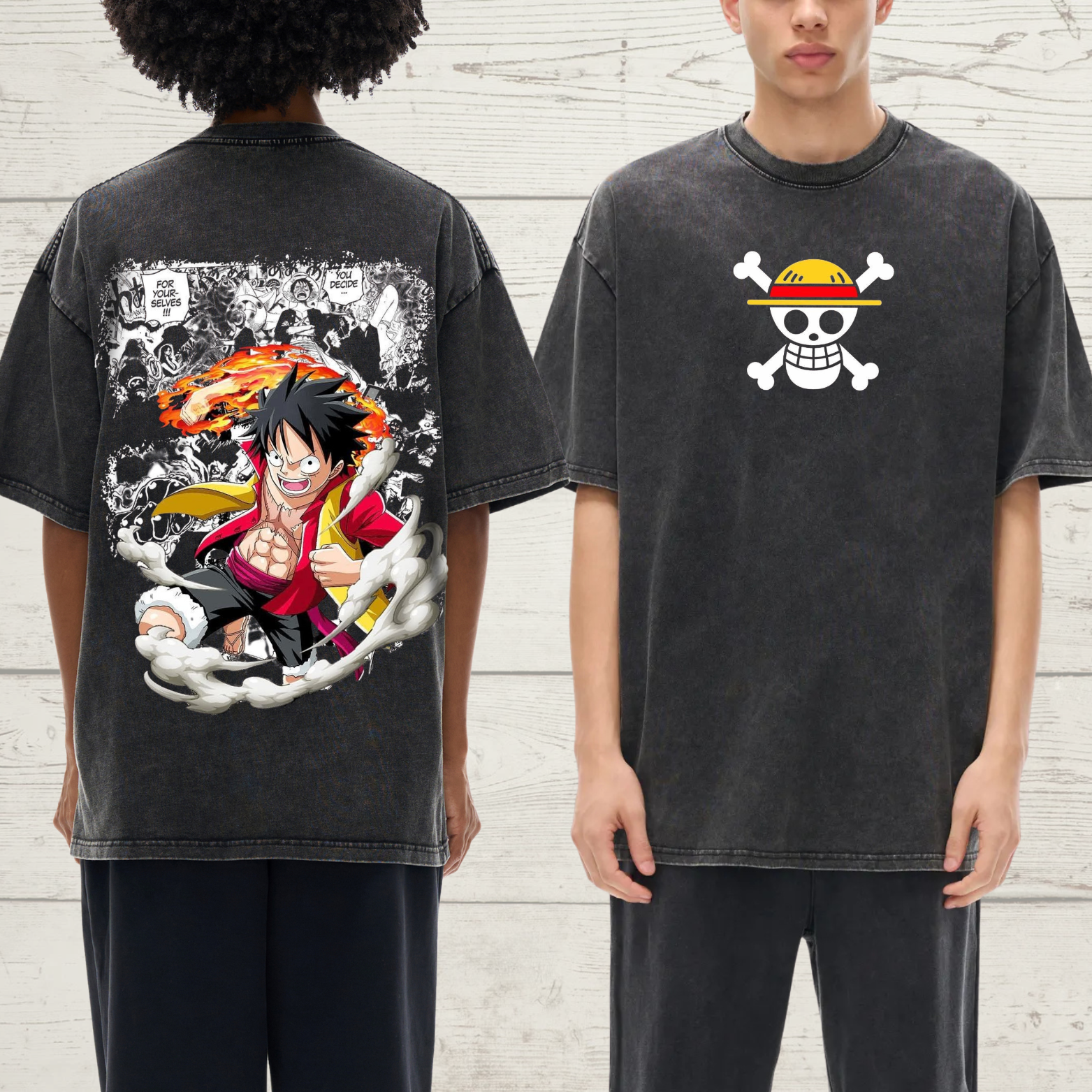 Luffy Anime Acid Wash Distressed Cotton Vintage