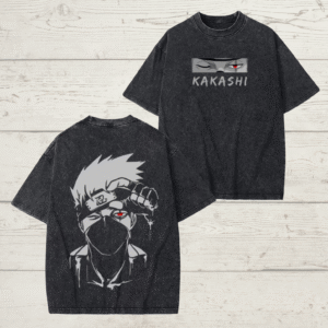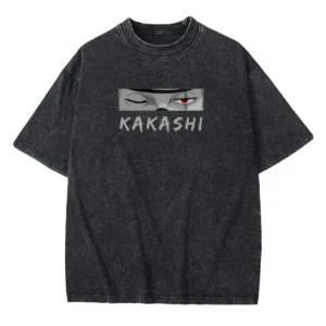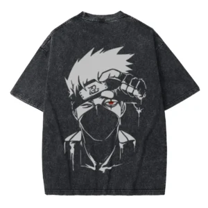 Show your allegiance to the Hidden Leaf with this bold Kakashi Sharingan T-Shirt – a must-have for anime lovers and streetwear fans alike. Designed with premium 100% cotton and a hefty 250 GSM fabric weight, this oversized acid wash tee combines comfort, quality, and the spirit of a true shinobi.